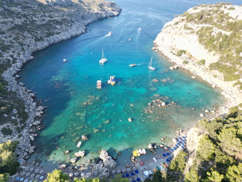 Die Anthony Quinn Bay zählt zu den schönsten Buchten. Kristallklares Wasser, felsige Küste und ideale Bedingungen zum Schnorcheln machen sie zu einem echten Highlight.