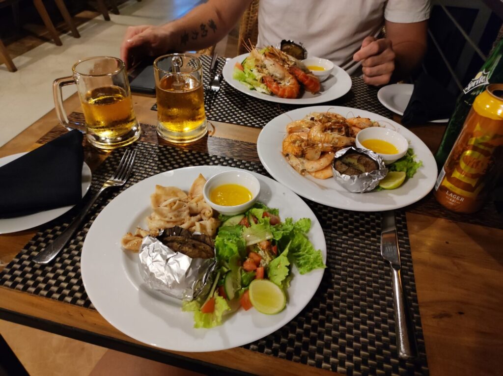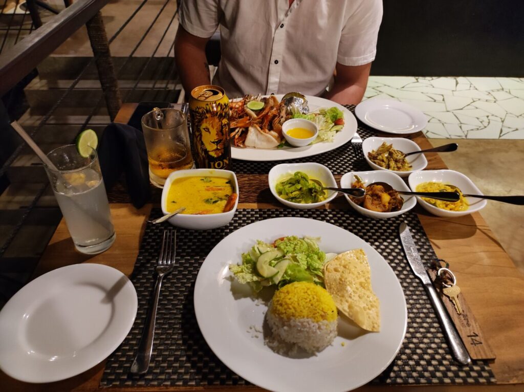 Das Essen ist geprägt von Reis und Curry, frischen Meeresfrüchte und Kottu als Nationalgericht. Die Speisen waren von der Schärfe alle im Rahmen. Uns hat es sehr geschmeckt. Vor allem die frischen Fischgerichte waren ein Gaumenschmaus.